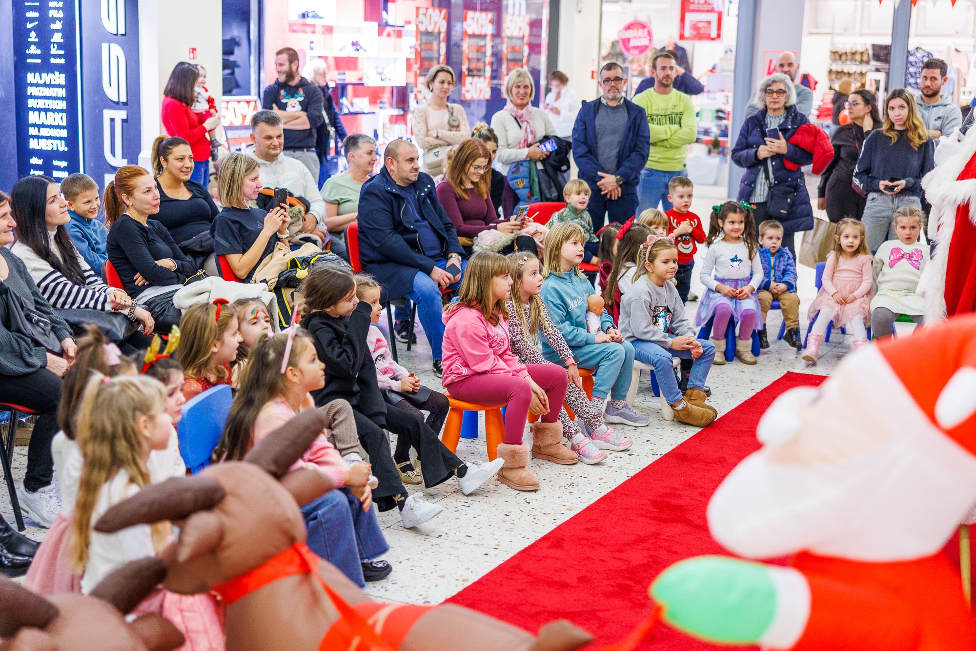 Najmlađi su s oduševljenjem sudjelovali u kreativnim radionicama, božićnim kulinarskim aktivnostima, izradi ukrasa i igračaka, dok su dječje predstave izmamile osmijehe i gromoglasan pljesak publike. Posebno uzbuđenje vladalo je prilikom druženja s Djedom Mrazom i Baka Mrazicom, koji su strpljivo pozirali za fotografije i dijelili blagdansku radost.