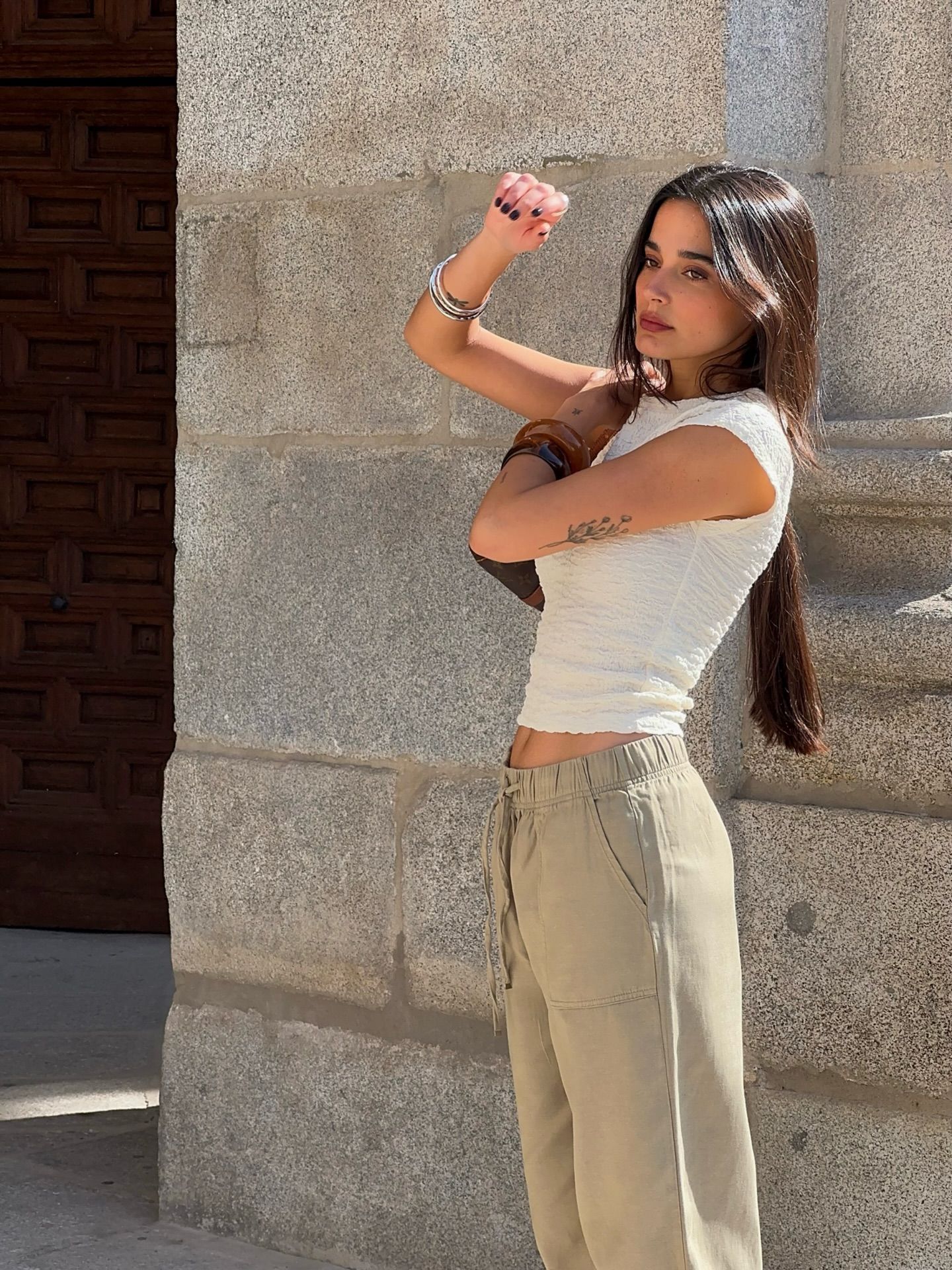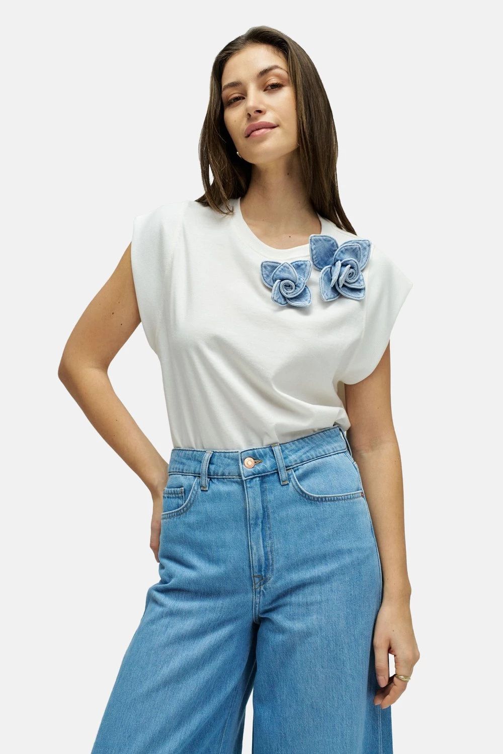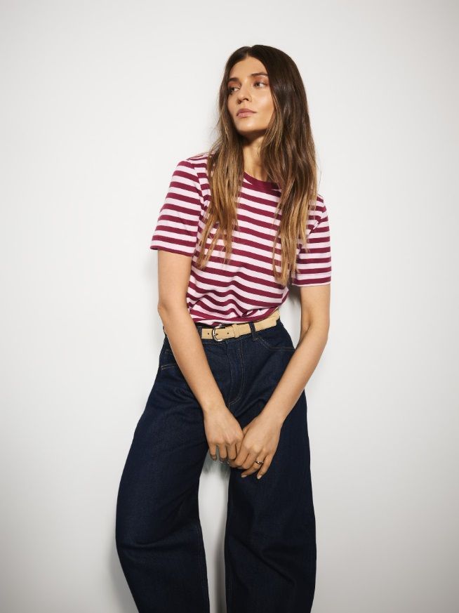Lagano uvučena majica u hlače visokog struka daje strukturiran izgled, dok opušteno nošenje djeluje cool i nenametljivo.