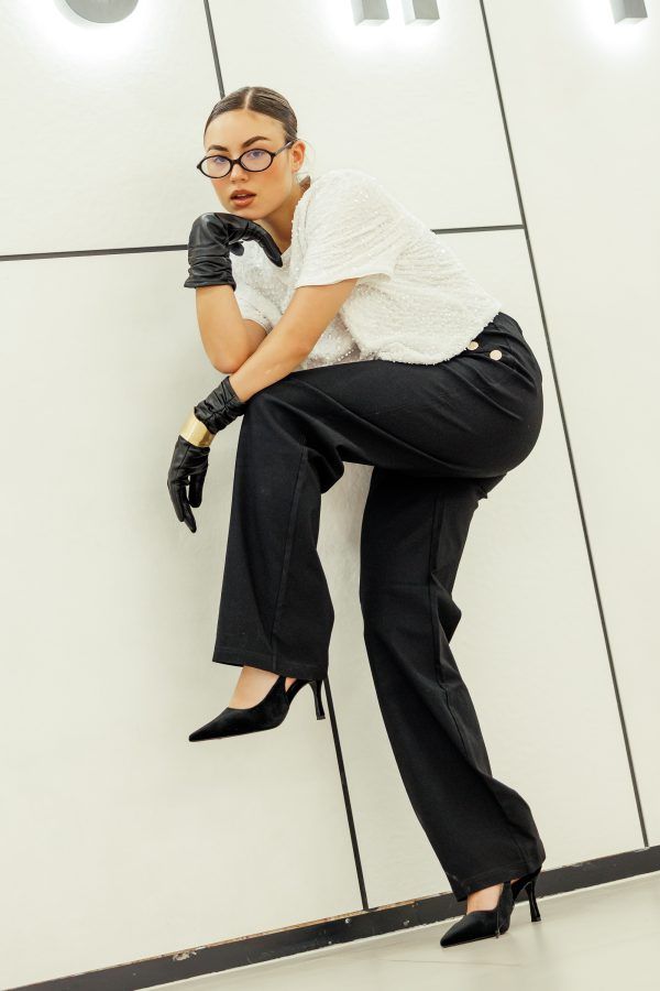Mohito je jedna od novijih trgovina, a asortiman je doista odličan. Od dnevnih casual izdanja, poslovnih do večernjih, Mohito ima sve. Iako je naš fokus bio na crnoj boji, malo smo ipak odlučili začiniti styling pa smo crnim rukavicama, crnim naočalama, crnim hlačama i štiklama dodali bijelu majicu.
