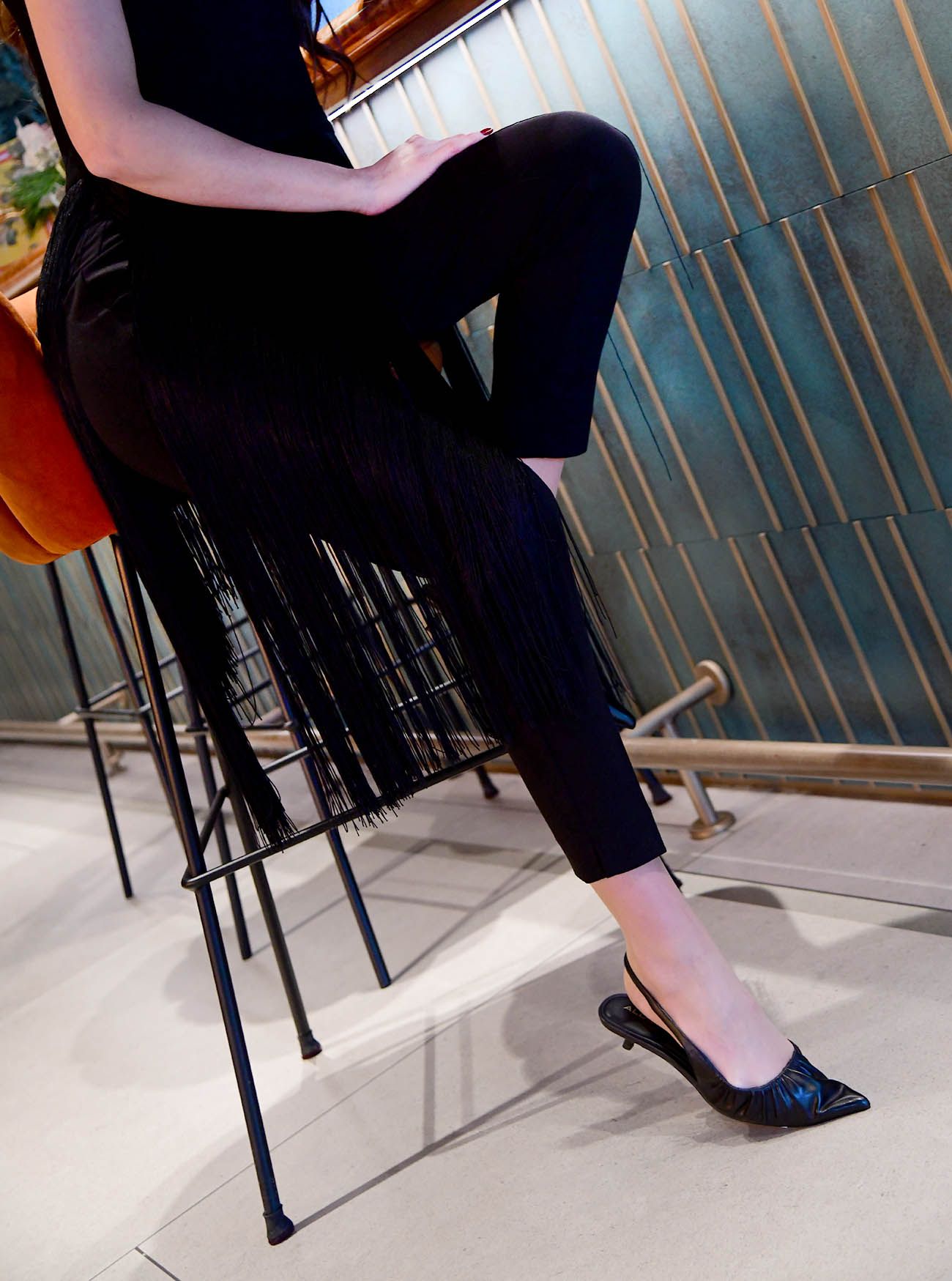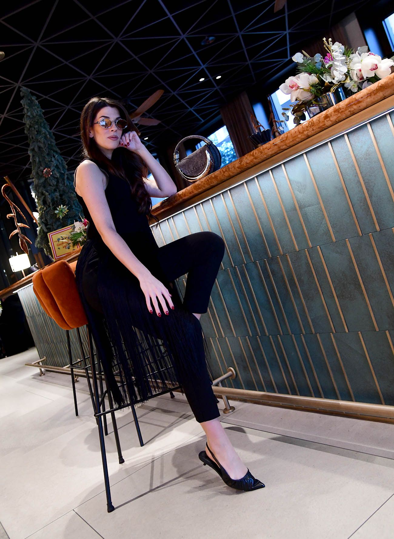 Odabrali smo bezvremensku crnu koja pristaje svakome i ostavlja poseban dojam, a efektne hlače, elegantan top i klasične salonke uvijek su siguran, ali i zanimljiv odabir, a uz efektnu torbicu i lijepe sunčane naočale, ova je kombinacija pun pogodak.