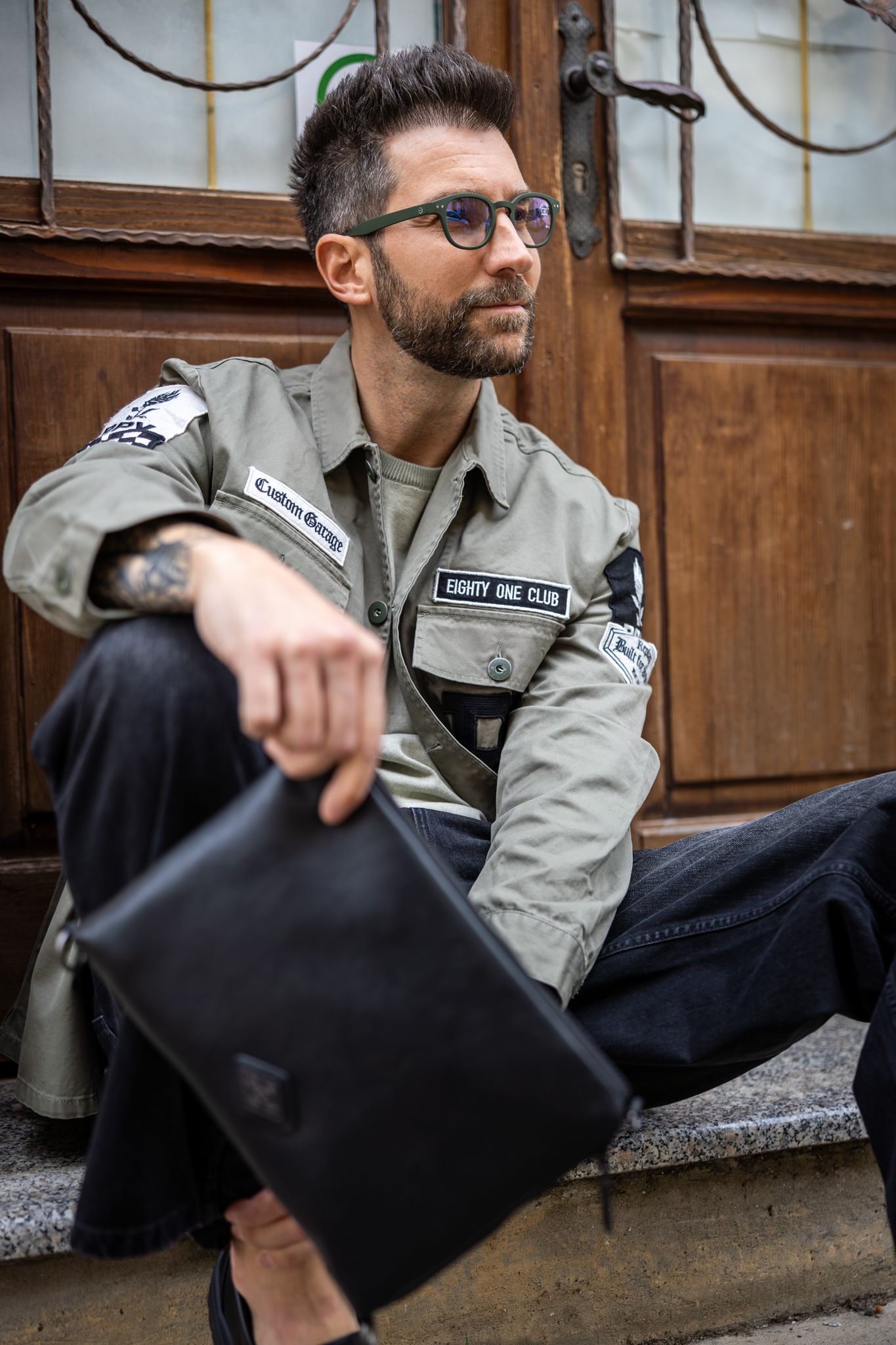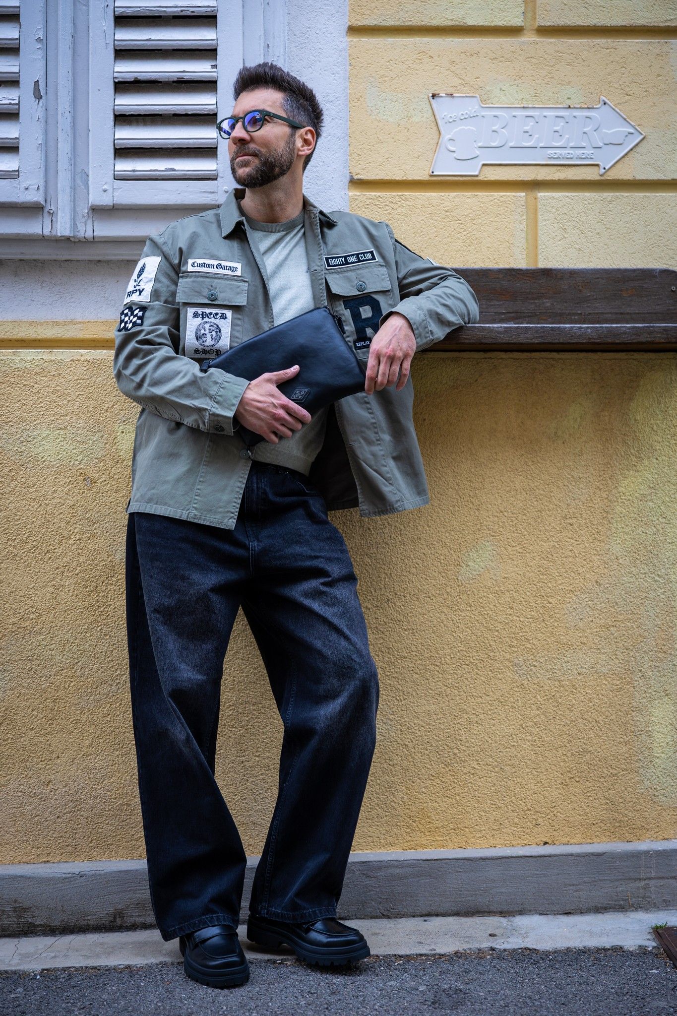 Naglasak je na slojevitosti koja djeluje spontano, ali je zapravo pažljivo osmišljena. Lagana jakna u maslinastozelenoj nijansi s patch detaljima donosi dozu utilitarnog šarma i vizualne dinamike, dok ispod nje dolazi minimalistička majica neutralnog tona koja smiruje cijelu priču. Upravo taj kontrast između statement komada i suptilne baze čini outfit nosivim u svakodnevnim situacijama – od jutarnje kave do večernjeg izlaska.