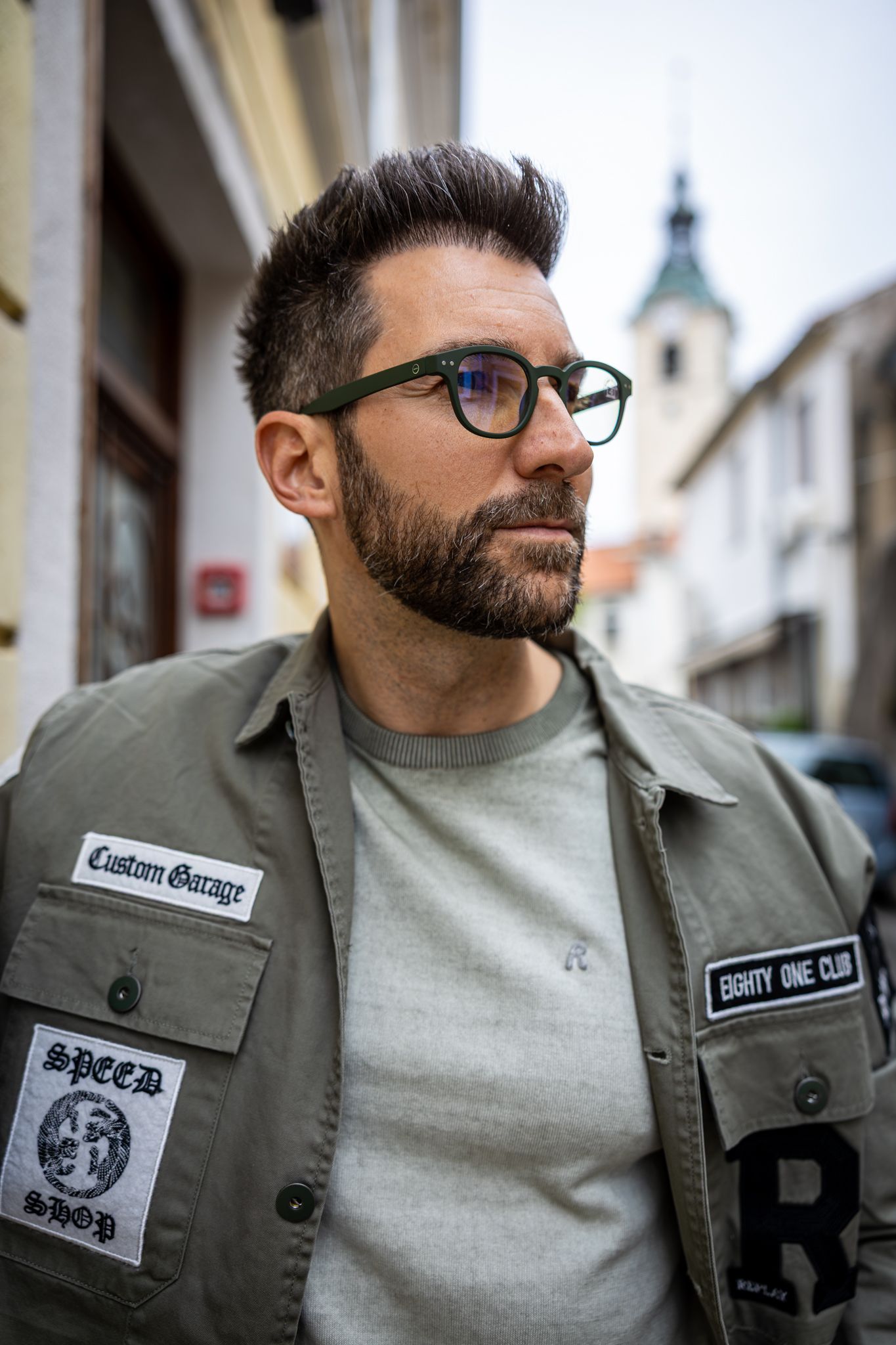 Jakna, Replay 261,00 €. Majica, Replay 104,00 €. Naočale, IZIPIZI 41,00 €