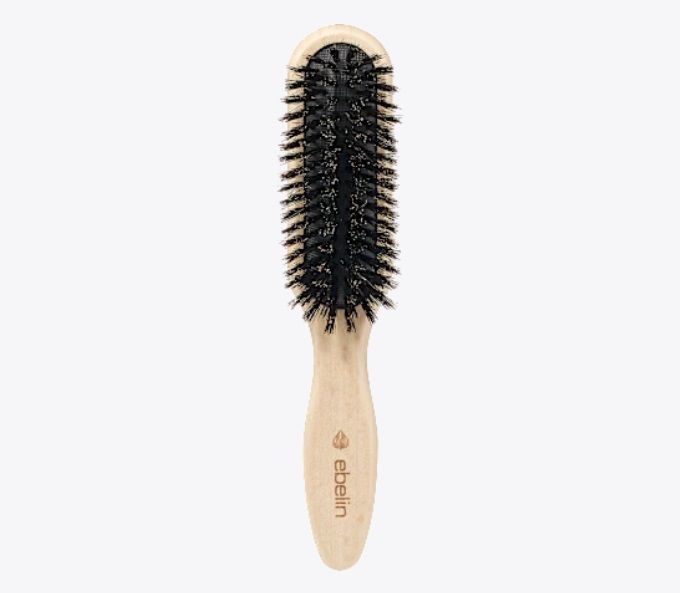 ebelin češalj Sleek-Bun savršeno je rješenje za besprijekorno oblikovanje. Kombinacija fleksibilnih plastičnih iglica i prirodnih vlakana osigurava zaglađen izgled i olakšava kontrolu nad neposlušnim pramenovima i malenim dlačicama. ebelin četka idealna je za stvaranje podignutih elegantnih frizura. Praktična ručka omogućava udobno držanje te bolju kontrolu. DM, 2,95 €
