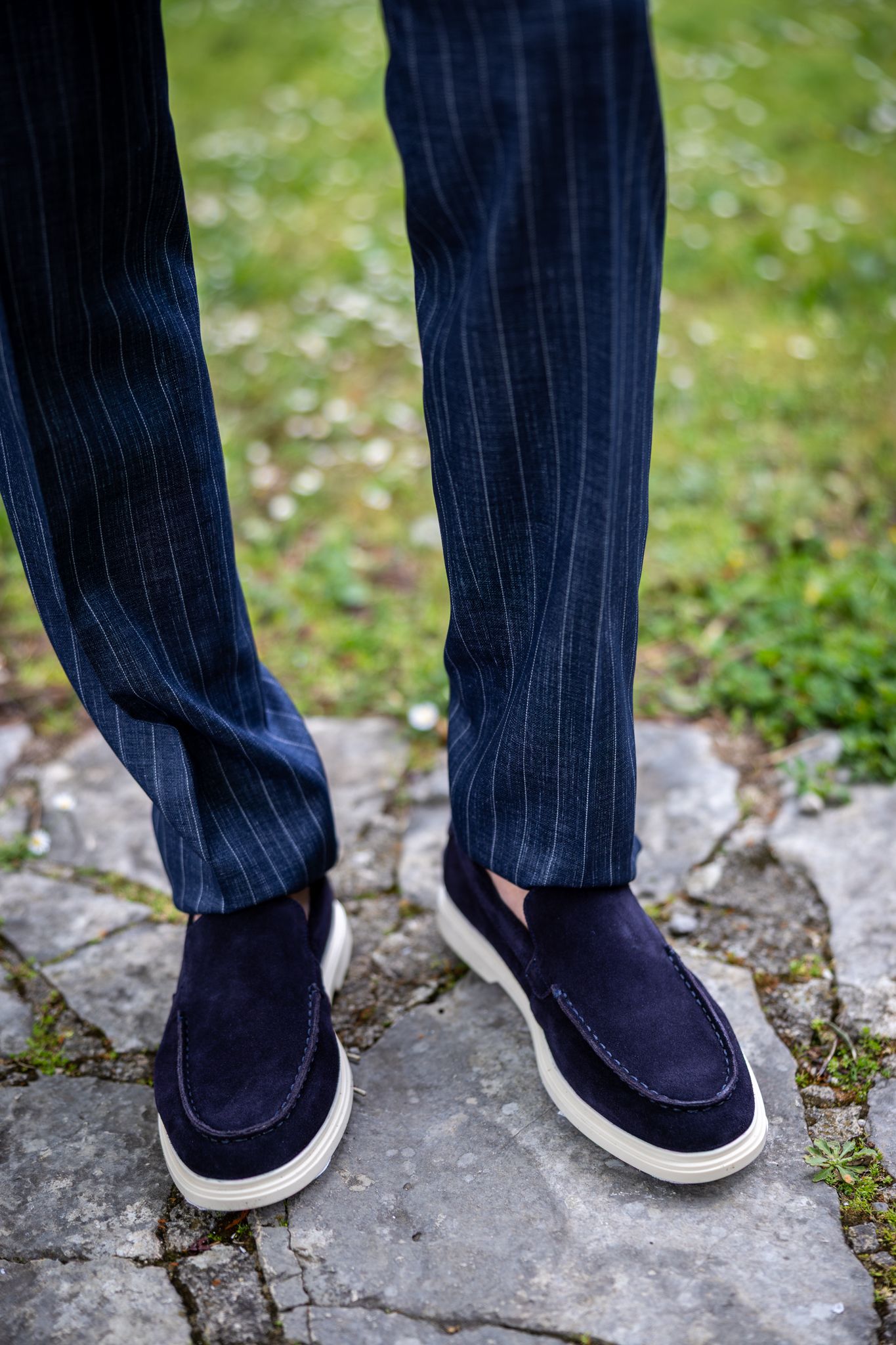 Prugasti uzorak ovdje nije samo estetski izbor – on vizualno izdužuje figuru i daje dozu “power dressing” energije, ali u suptilnijem, lifestyle kontekstu. Tamnoplava nijansa dodatno naglašava sofisticiranost i s razlogom se smatra jednim od najsvestranijih i najpouzdanijih izbora u muškoj garderobi .