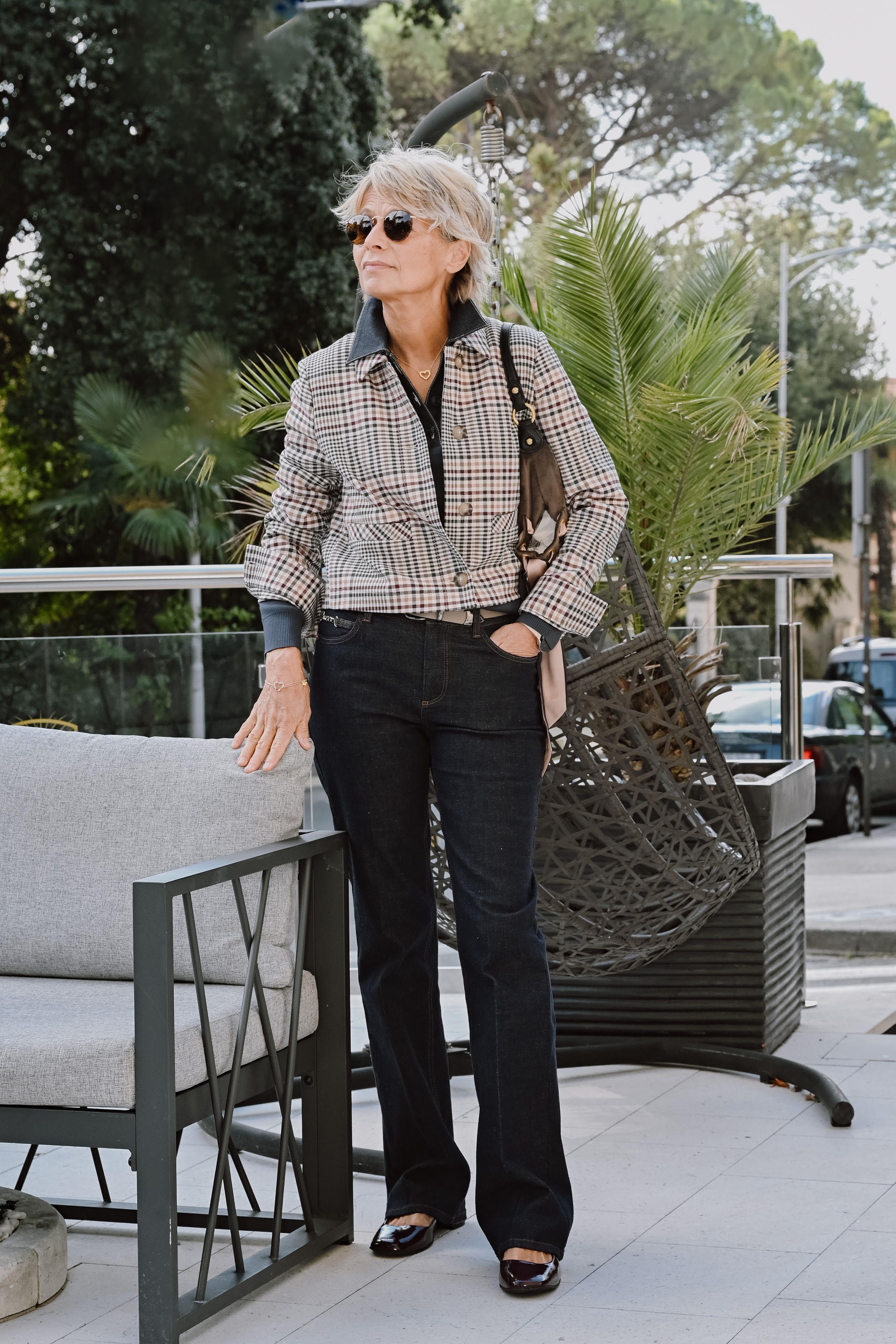 Mila: Hlače, Comma 119,99 €. Sako, Comma 149,99 €. Majica, Comma 89,99 €. Naočale, Ghetaldus 196,00 €. Remen, Comma 59,99 €. Torba, CCC 99,99 €. Cipele, CCC 31,99 €
