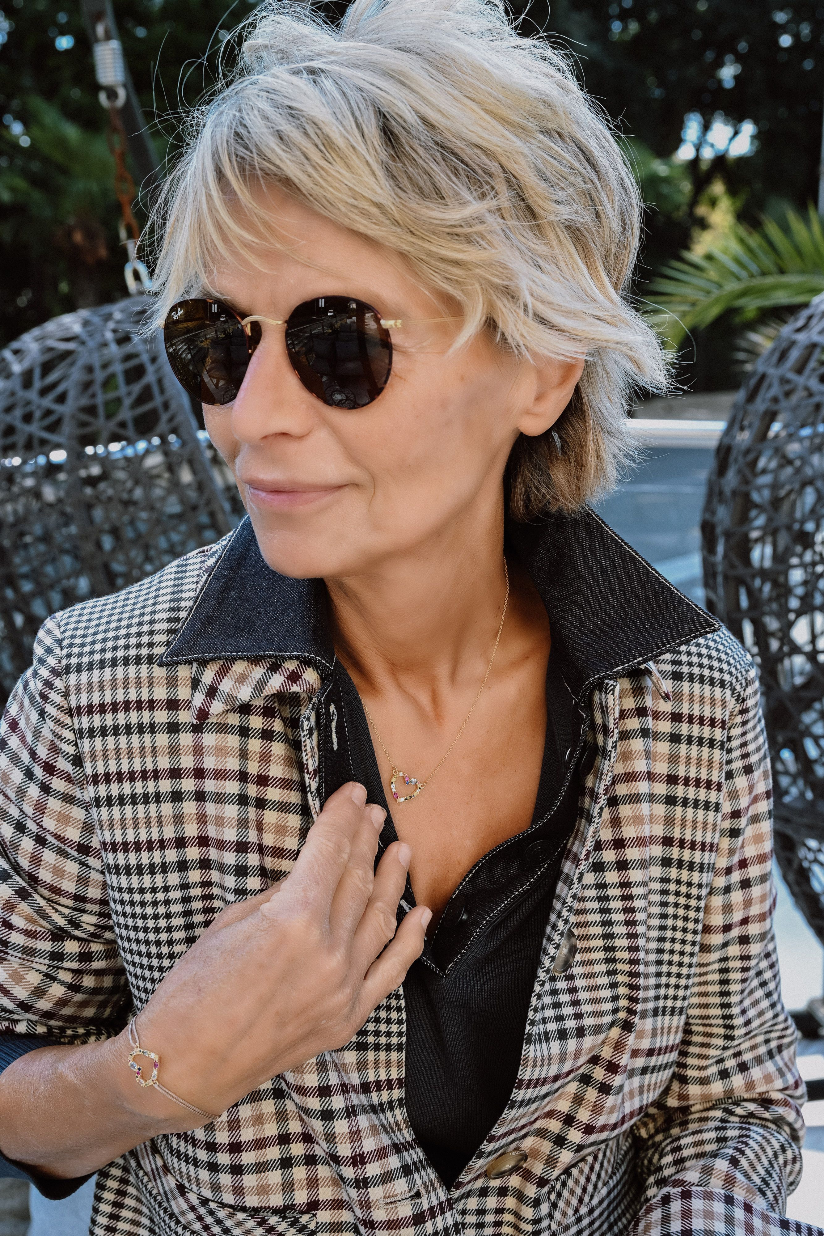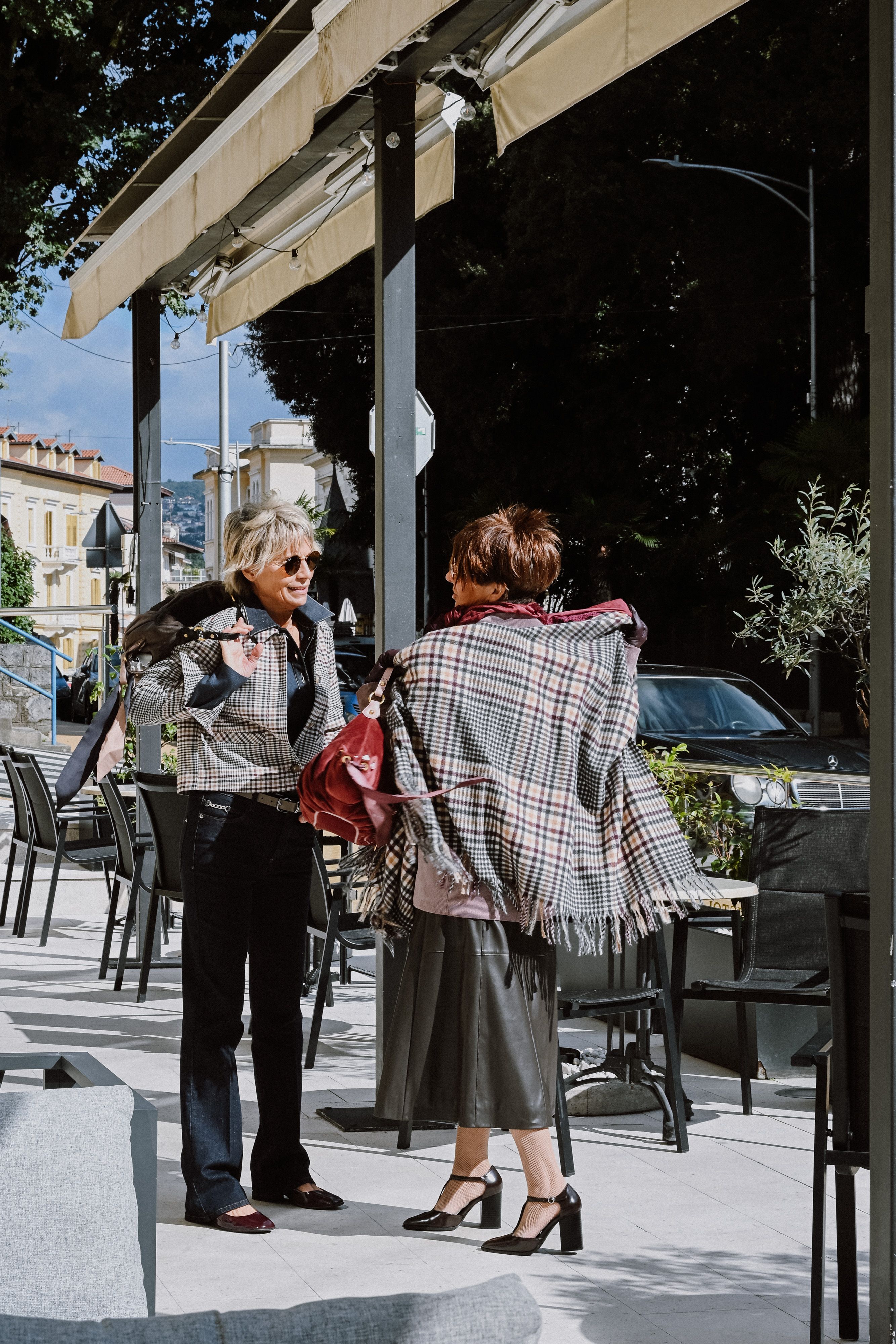 U jednoj kombinaciji Mila je nosila jaknicu na kockice, a ja sam pronašla šal s istim printom - da barem djelujemo usklađeno.