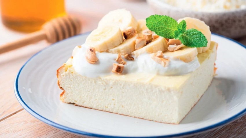 Ovaj recept za cheesecake savršen je izbor kada želite lagan, kremast i nježno osvježavajući desert bez kompliciranih koraka. Kombinacija kremastog sira, grčkog jogurta i blage note limuna daje bogat, ali uravnotežen okus, dok se pečenje u vodenoj kupelji brine za savršeno glatku teksturu bez pucanja. Poslužen s bananama, grčkim jogurtom i hrskavim indijskim oraščićima, ovaj cheesecake idealan je za posebne prilike, ali i kao elegantna slastica uz popodnevnu kavu.