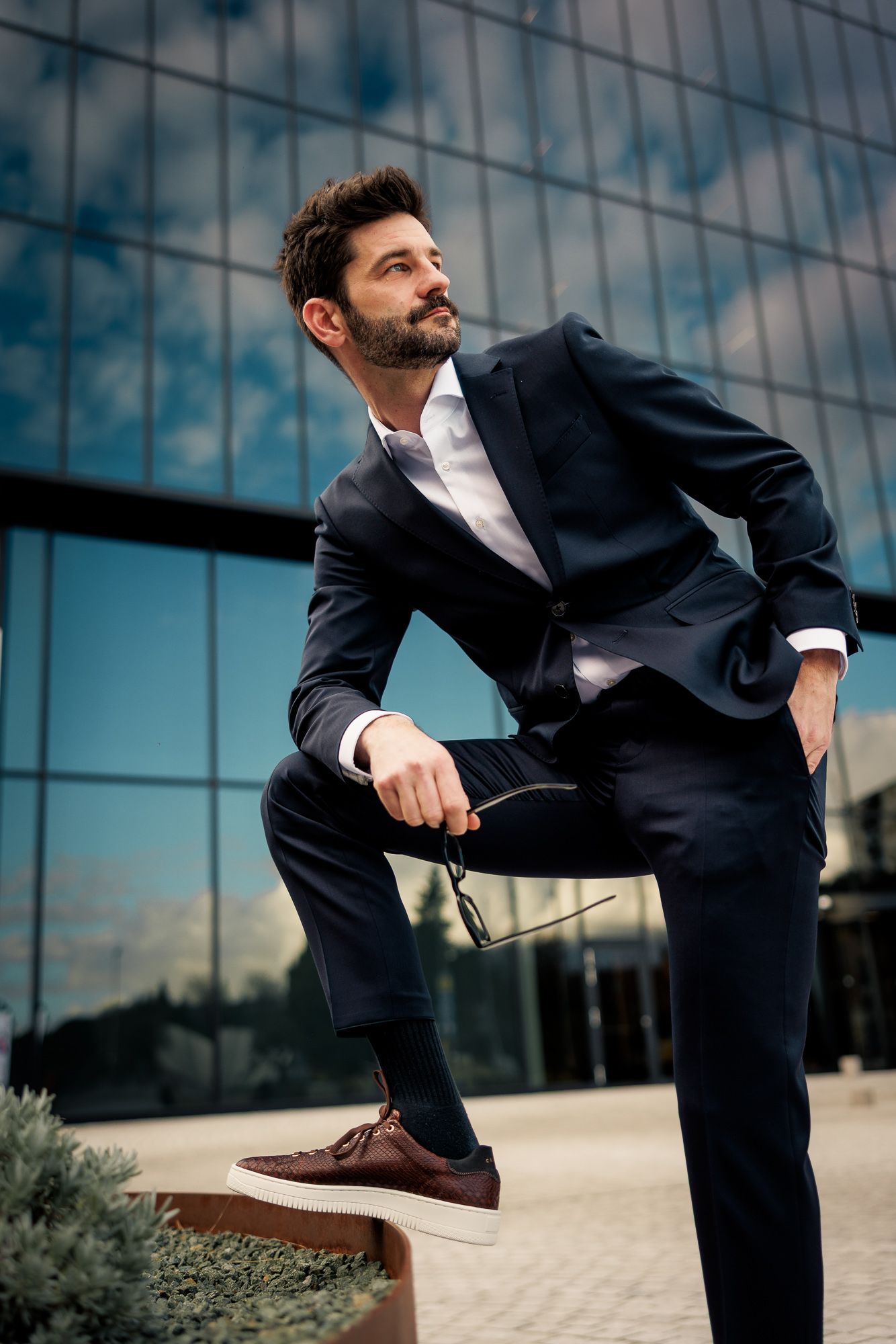 Boss ima sjajne nove kolekcije, odijela koja prate potrebe poslovnog muškarca, ali i sve što će upotpuniti stil – remeni, košulje, kravate, torbe, Boss ima sve. Za obuću koja ostavlja dojam pobrinut će se Shoutique, smeđe nijanse i poseban model tenisica odlično će se uklopiti u biznis, ali i u casual stil.